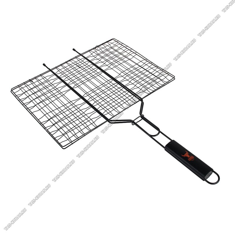 Решетка плоская 40х30см с антипригарным покрытием, деревянная ручка, сталь, черный GRILLBOOM